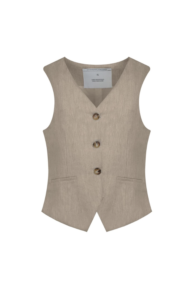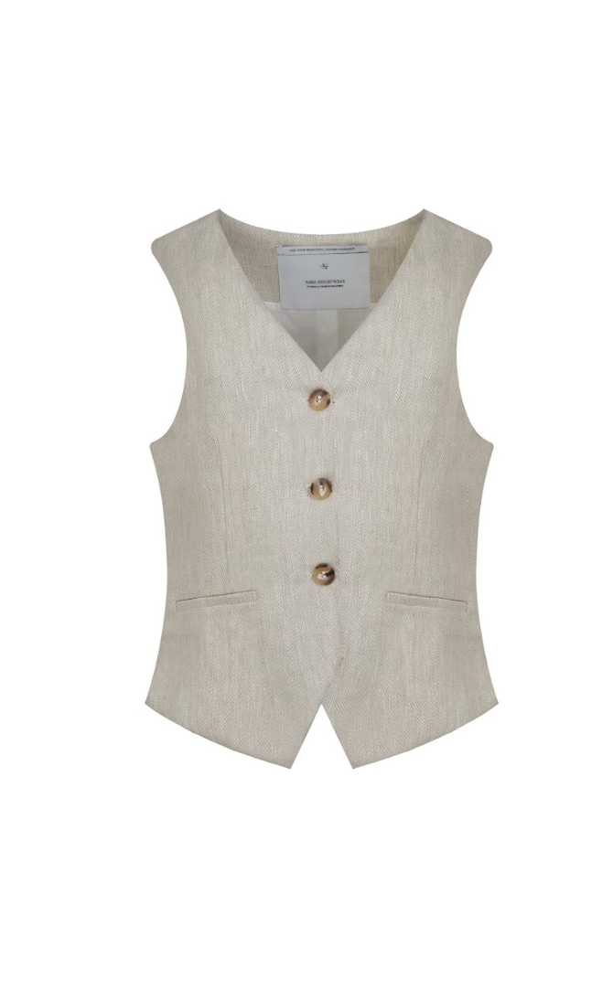 El Chaleco Alice confeccionado en XX, tiene un elegante cierre de tres botones y dos prácticos bolsillos frontales. Su diseño sofisticado lo convierte en la pieza ideal para añadir un toque de elegancia a looks tanto casuales como formales.