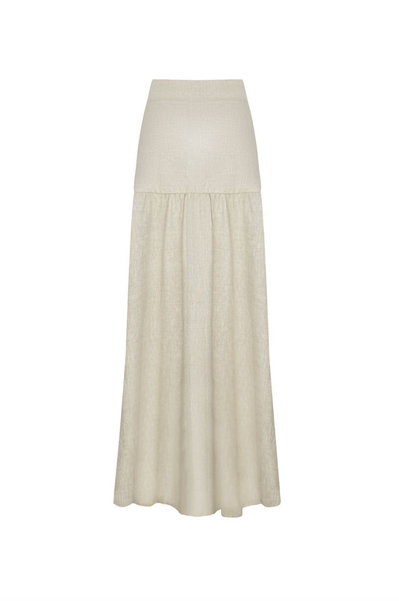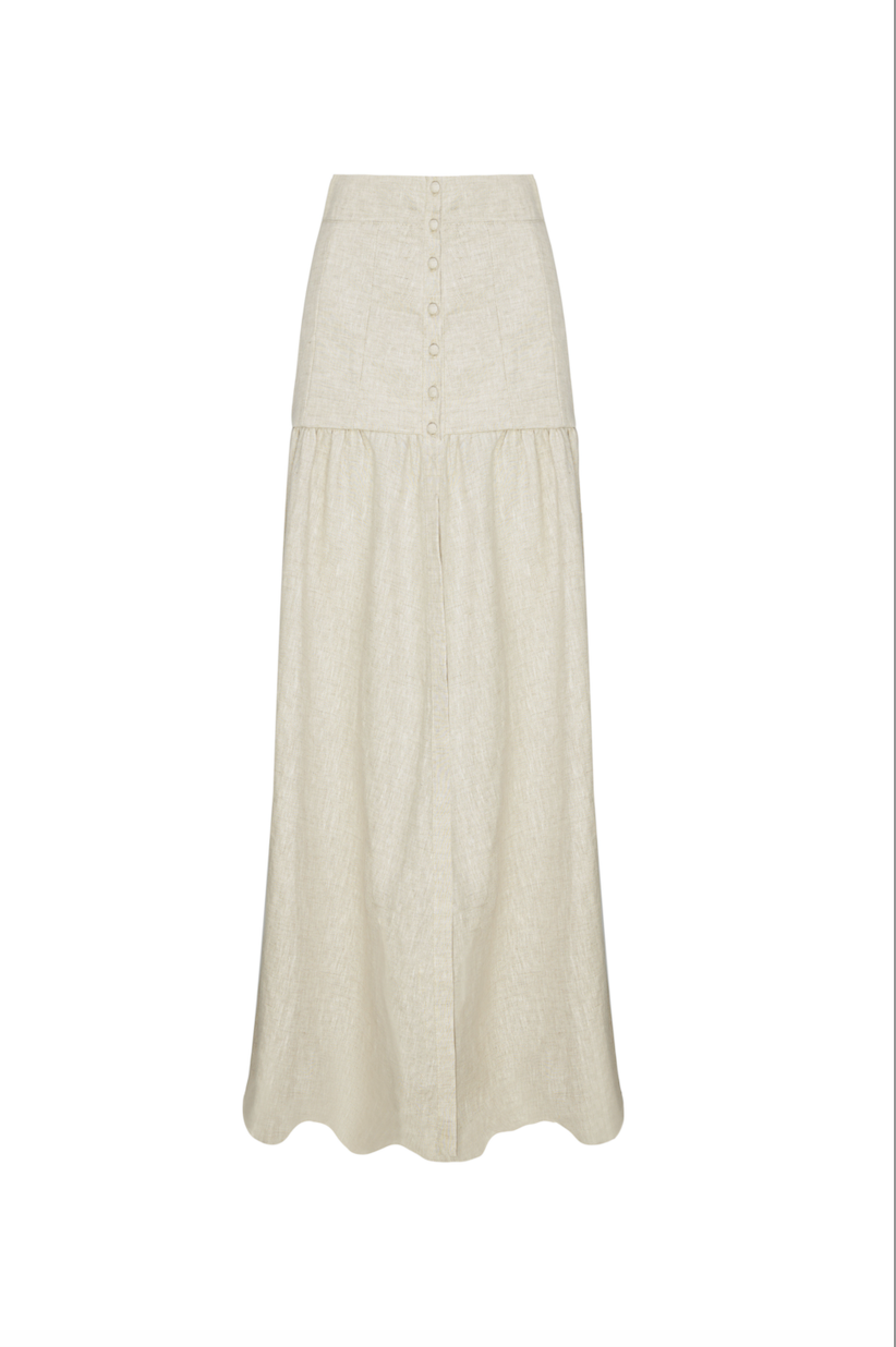 Esta falda cuenta con una fila de botones en la parte delantera aportándole un toque sofisticado. Tiene una abertura que brinda libertad de movimiento y el lino es perfecto para estos días calientes.