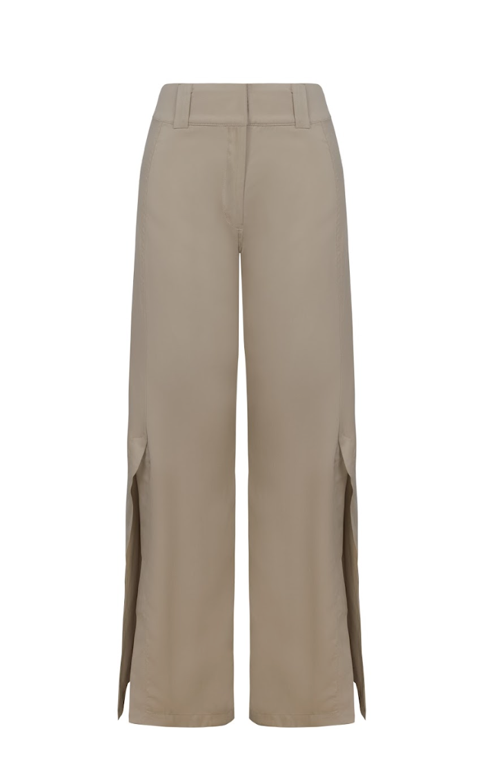 Los Pantalones Gala están elaborados en suave tejido Tencel, estos pantalones de pierna ancha cuentan con llamativos cortes laterales que aportan un giro único a una silueta clásica.