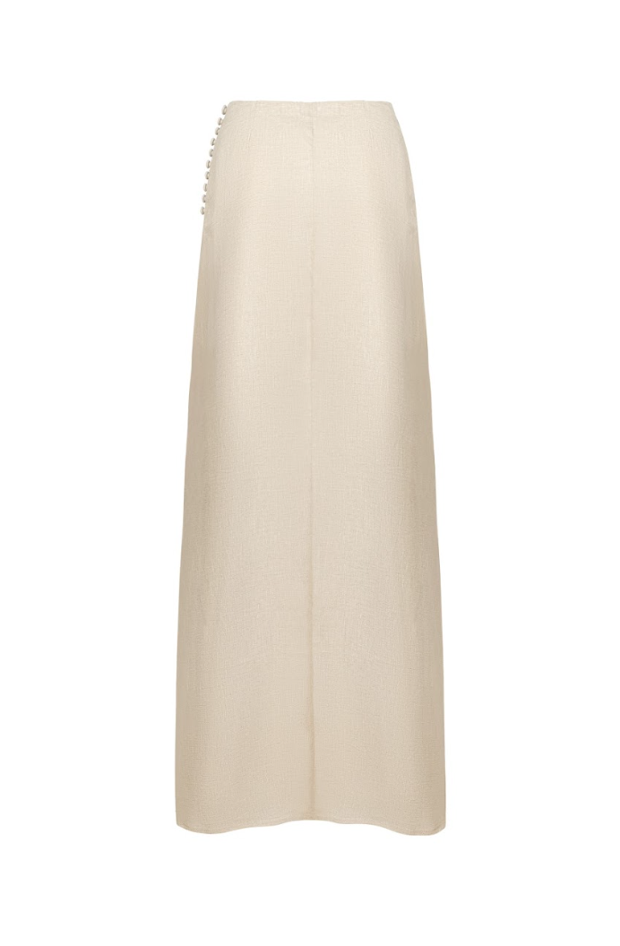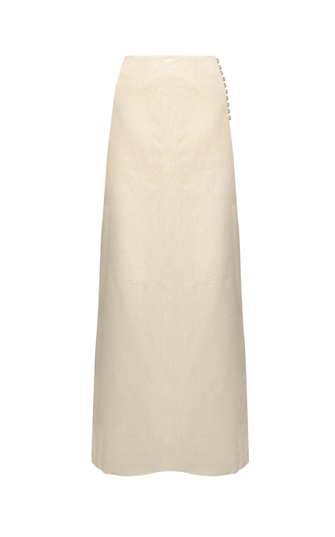 Silva Skirt: Hecha en 100% lino, esta falda cuenta con botones laterales y una abertura perfecta que permite la movilidad sin esfuerzo!